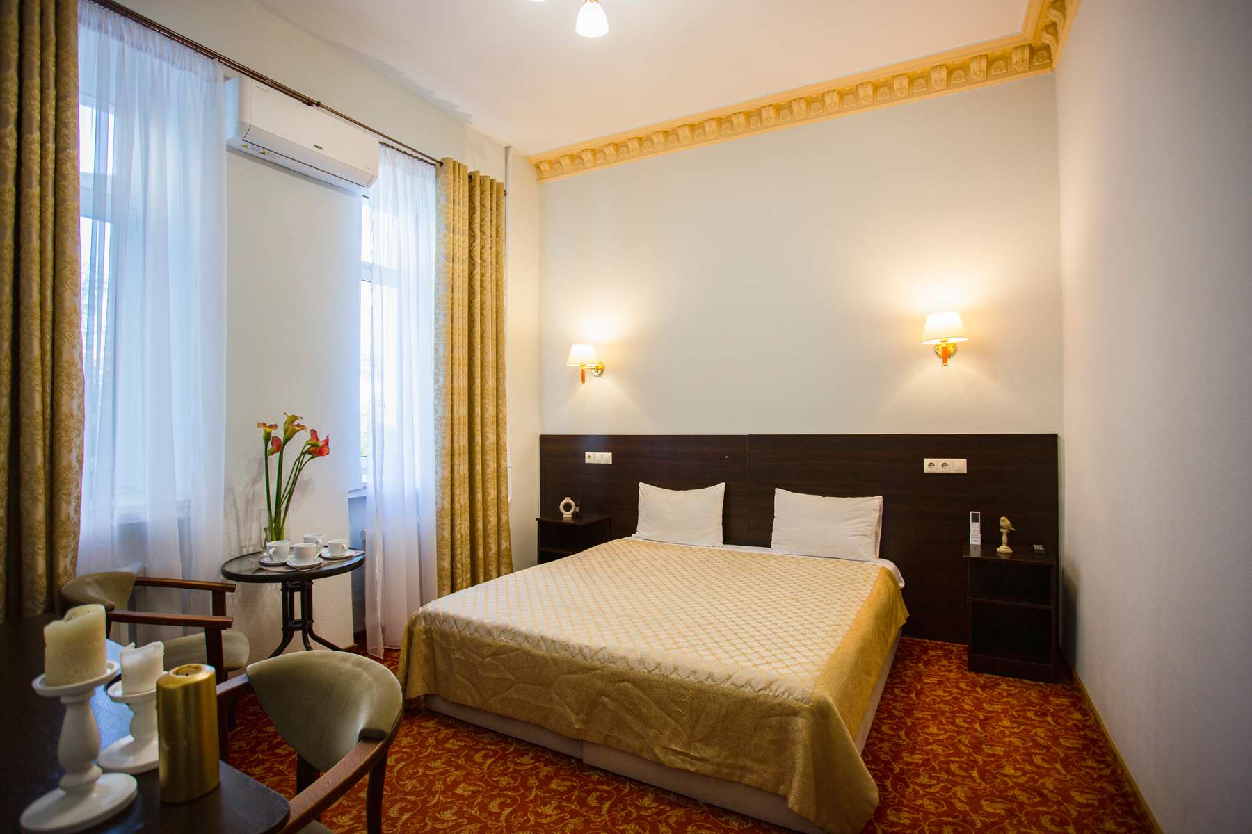 Описание: 2 спальни, одна двуспальная и две односпальных кровати, ванная комната, шкаф, рабочий стол, отличная звукоизоляция, окна выходят на бульвар.